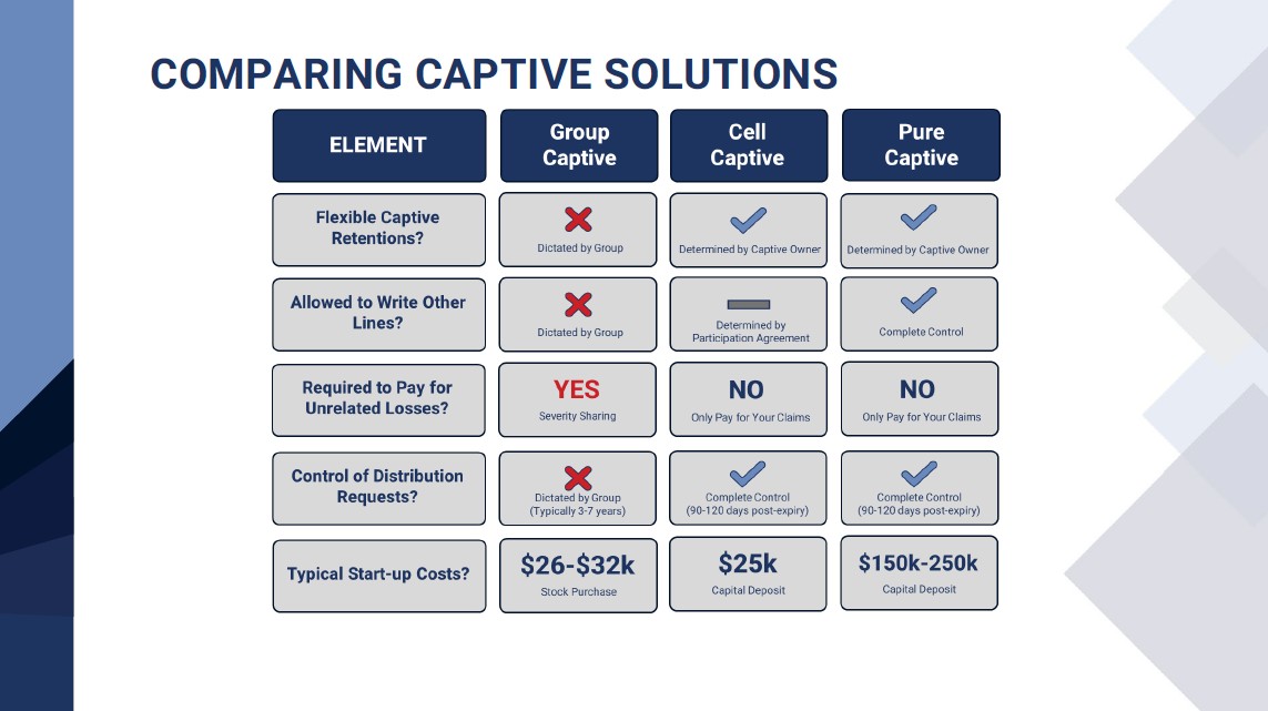 This guide explores three industry-leading structures—Group Captives, Cell Captives, and Pure (Single Parent) Captives—showcasing their operational, financial, and strategic nuances. While each structure has their place, this article will outline the pros and cons of each, and what makes the most sense for your business.